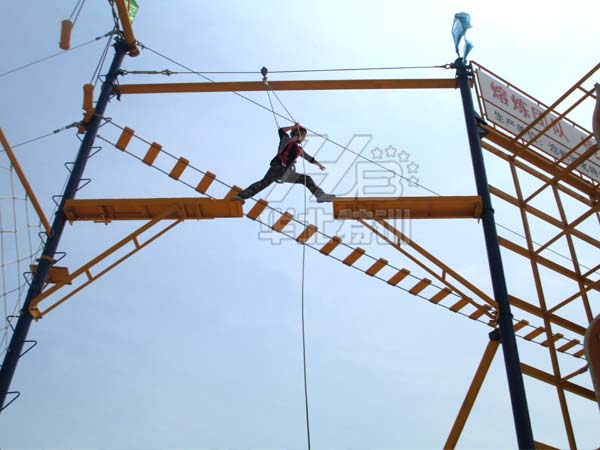 規(guī)格:占地17米×17米,由15個1米×1米×4米高的站臺組成。平臺高2米。起點和終點設(shè)有樓梯。   包含項目:獨木橋、勇往直前、圓木橋、圓木秋千、等…